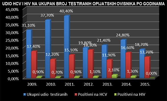 Aktualni europski akcijski plan stavlja naglasak na povećanja kvalitete i učinkovitosti u reduciranju problema zaraženih HCV-om prevencijom, liječenjem i pružanjem „harm-reduction“ usluga intravenoznim ovisnicima, kao i multidisciplinarni pristup liječenju bolesti ovisnosti koji se primjenjuje u našoj Službi za mentalno zdravlje i prevenciju ovisnosti. Stoga sve nove opijatske ovisnike već kod prvog pregleda testiramo na krvlju prenosive viruse (HCV i HIV), a tijekom godine se retestiraju pacijenti s rizičnim ponašanjem. Značajan broj ovisnika zbog straha od suočavanja s „istinom“ izbjegava ili odgađa testiranje te ih je potrebno ohrabriti i potaknuti da prihvate testiranje „na licu mjesta“ pouzdanim Ora-Quick testovima na slinu, jer ako se pacijente upućuje u specijalizirani laboratorij, 30 do 40% ovisnika neće obaviti testiranje na zaraženost virusima HCV i HIV.